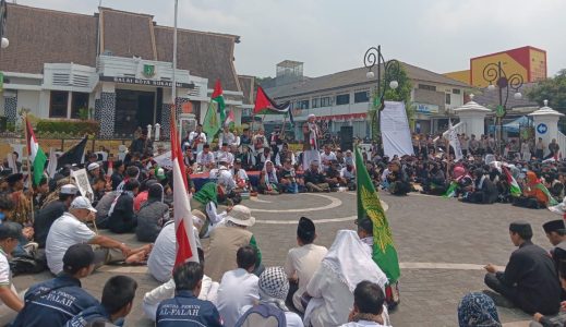 BERITAOKE.id – Ratusan Massa yang tergabung dalam Aliansi Rakyat dan Aktivis Sukabumi Raya (ARASY) menggelar aksi Solidaritas, Sukabumi Bela Palestina yang digelar di depan Balai Kota Sukabumi, Minggu, (22/10/2023).