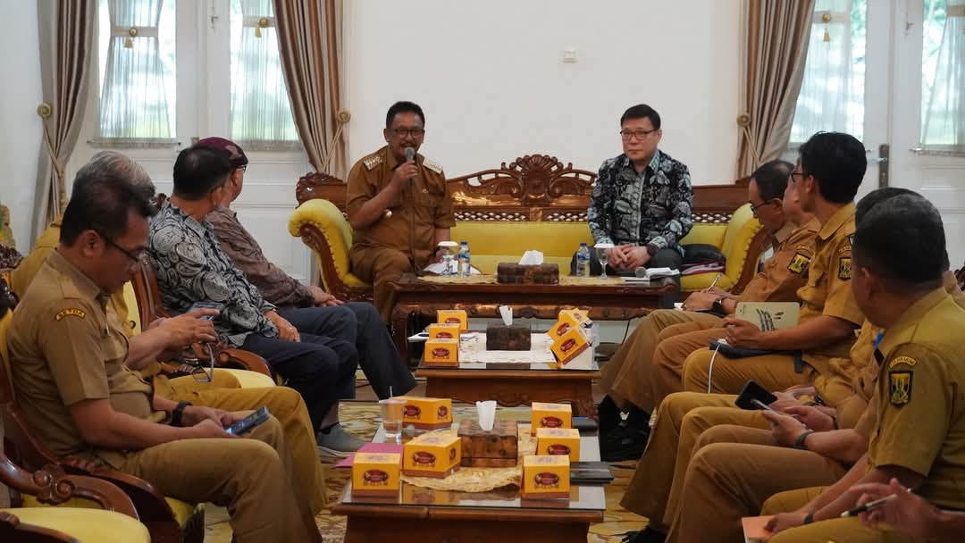 BERITAOKE.id – Bupati Sukabumi H. Asep Japar beraudiensi dengan Trade Advisor of Gyeongsangnamdo Provincial Government, Korea Selatan dan Direktur PT. VDF Jaya Indonesia Mr. Noh Chang Dong di Pendopo, Senin, 19 Mei 2025.