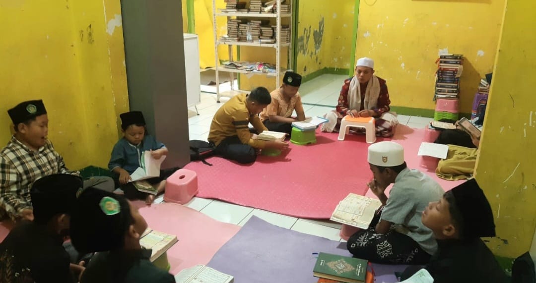 Terlihat para santri begitu antusias saat melaksanakan belajar bersama dengan membaca al-quran bersama-sama.
