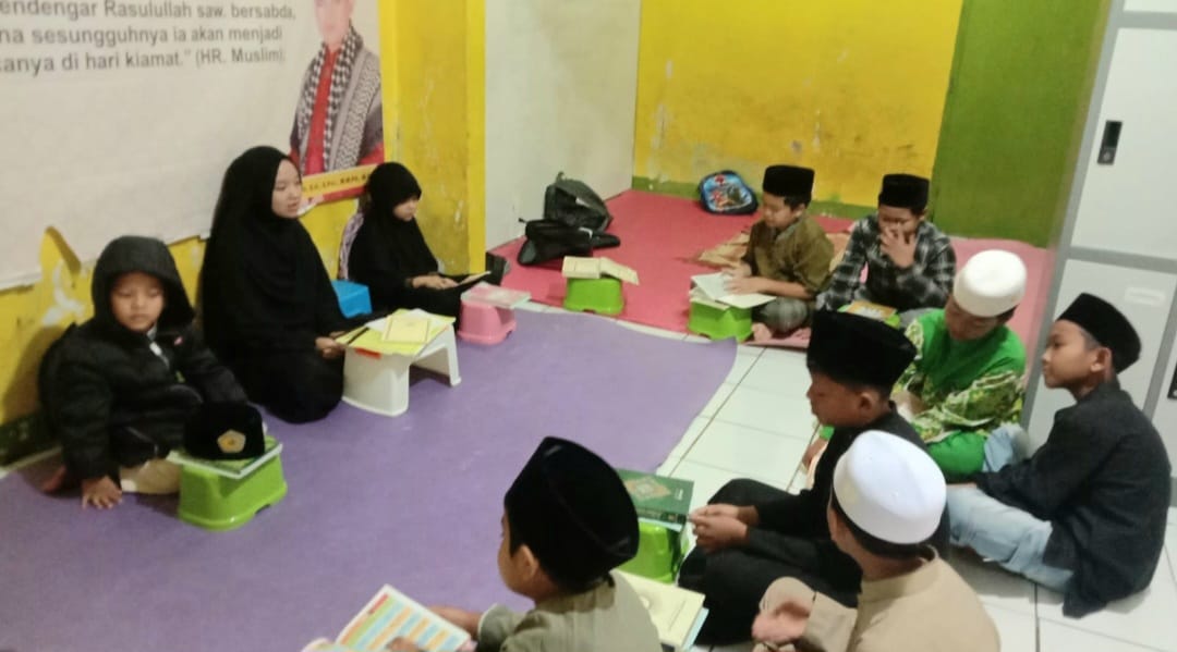 Terlihat para santri begitu semangat dan ceria saat mengikuti kajian belajar bersama dengan membaca al-quran bersama-sama.