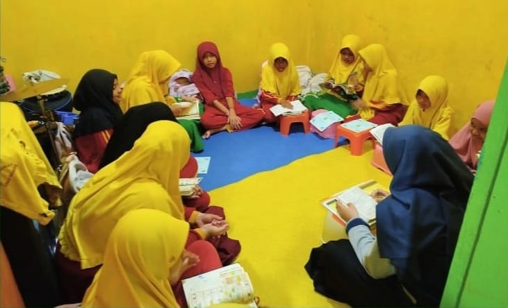 Kegiatan rutin membaca dan menghafal al-quran secara bersama-sama merupakan metode belajar pada Program ke-1 di Tahfidz Al-qur’an Fathiyyah Zahra.