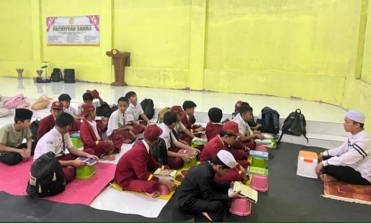 Keceriaan mereka dalam membaca dan menghafal al-quran secara bersama-sama itu merupakan metode belajar pada Program ke-1 Tahfidz Al-qur’an Fathiyyah Zahra.