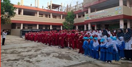 BERITAOKE.id – Hari pertama masuk sekolah pasca libur semester, ratusan siswa Madrasah Ibtidaiyah (MI) Baitussalam, Cibolang Girang, Kecamatan Cisaat, antusias mengikuti upacara pengibaran bendera.